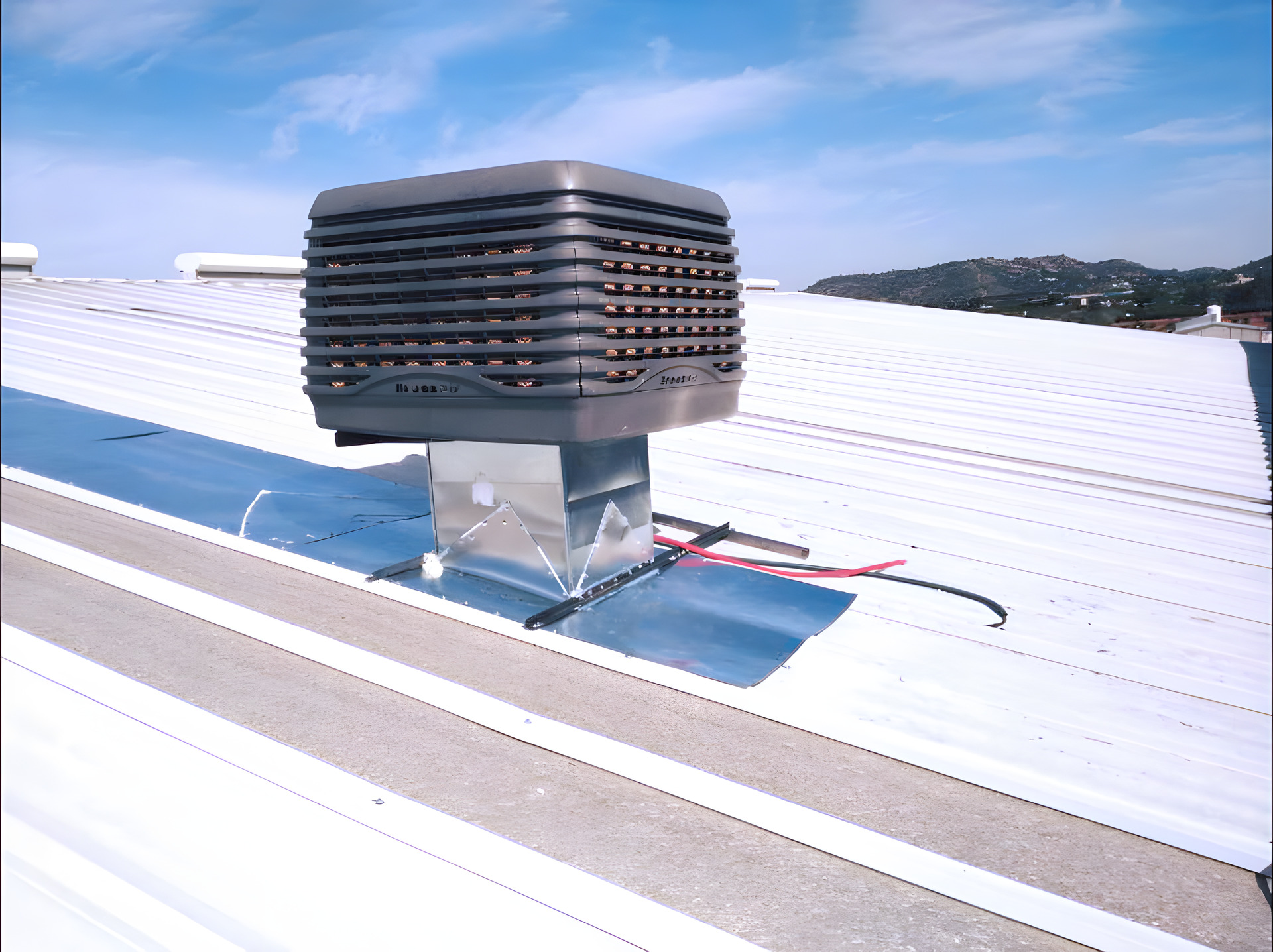 - Enfriamiento evaporativo con ventilador axial e inversor, optimizado para aplicaciones industriales y comerciales